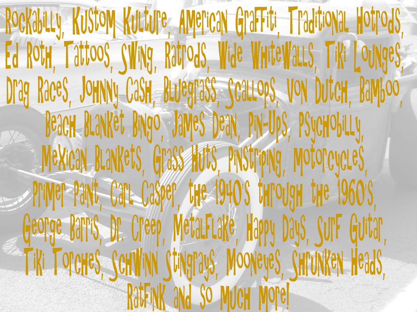 Rat rod: A retro-styled, traditional, low-budget hot rod that eschews high-dollar paint, modern components, or billet aluminum parts in favor of primer, junkyard/swap meet scrounged vintage parts, and raw or unfinished appearance. The term was likely inspired by the slang term “rat bike,” which is used in the custom motorcycle world to describe a bike intentionally built to look grungy and dilapidated as a subversive protest of expensive, overly finished “trailer queen” bikes.